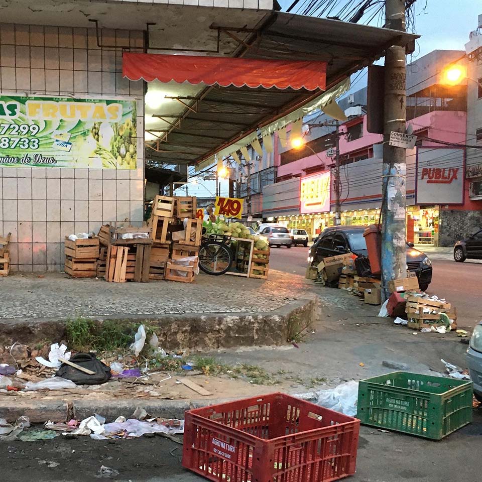A Rua Abílio José de Matos é a entrada do Porto da Pedra. As calçadas já não são muito largas e, infelizmente, o povo ainda completa a imundice jogando mais lixo na rua, obstruindo a passagem dos pedestres. Ficamos sem calçada por conta da falta de educação e de respeito ao próximo. Este ponto fotografado fica pertinho da Pizzaria Roger e de outros comércios na região. via @JackmanDias