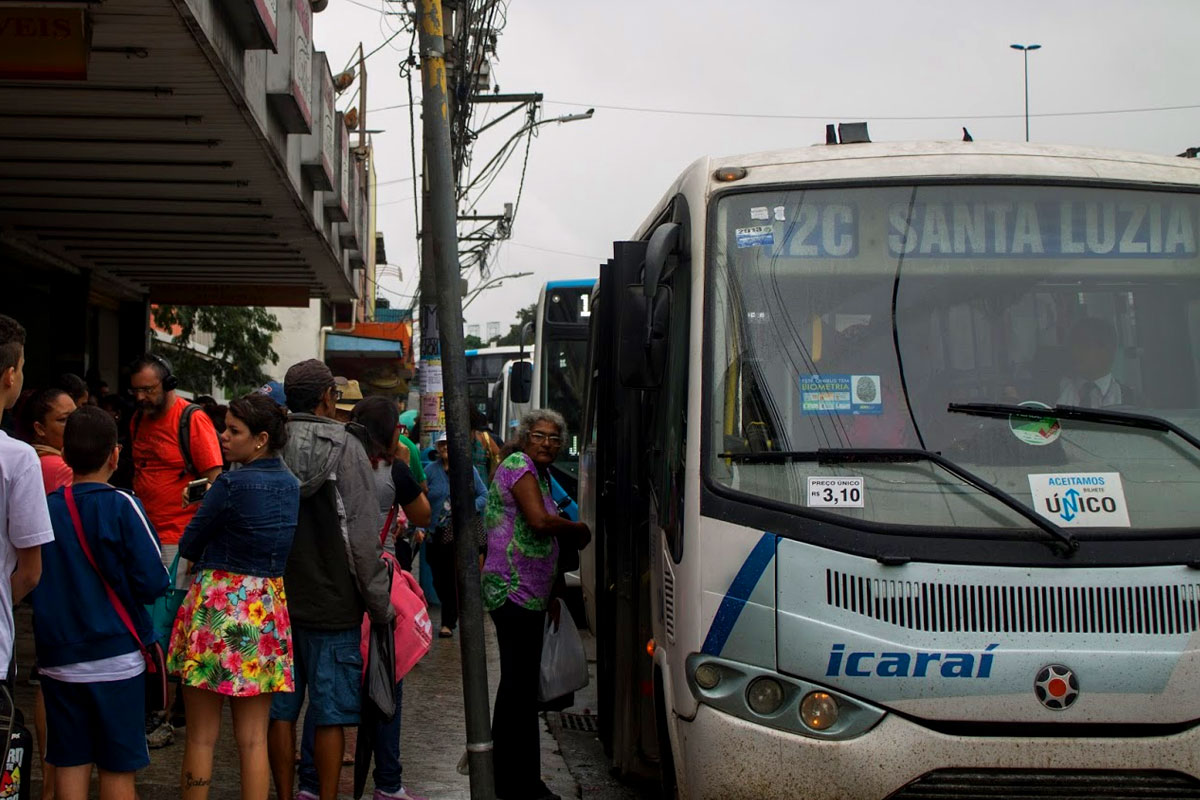 Pessoas no ponto aguardando o ônibus. Foto: Ricardo Rigel / Jornal Extra.